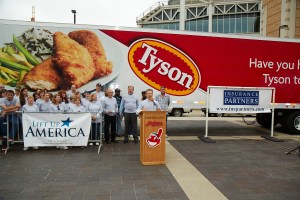 So while we may not know which came first, the chicken or the egg, I think we finally have an answer as to why the chicken crossed the road. Obviously, it was to get into the Tyson Foods truck so that it can be brought to Progressive Field and passed out to local food agencies. It’s not the best punch line for a joke, but like the food distribution, it’s all about the delivery!