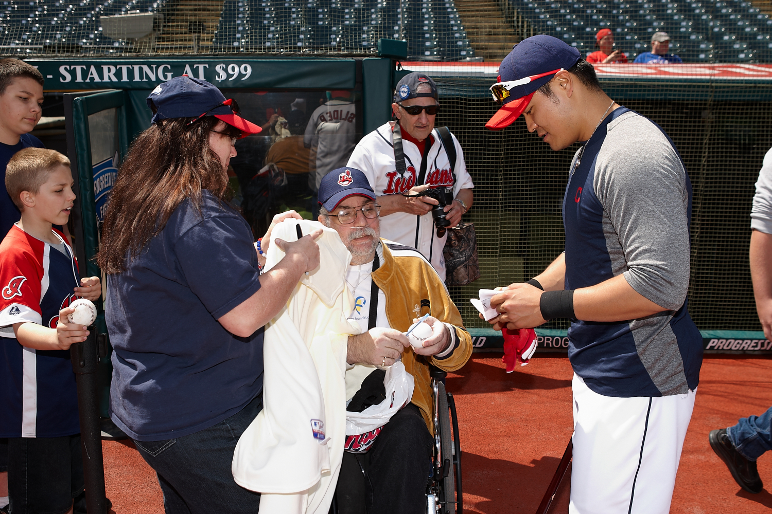 The Dream Foundation–On Sunday, May 6, the Cleveland Indians partnered with The Dream Foundation to make a dream come true for one patient. The Dream Foundation’s mission is to enhance the quality of life for individuals and their families who are battling life-threatening illness. Indians’ pitcher Justin Masterson stopped by to talk to the family and offer some words of support and Indians outfield Shin-Soo Choo also stopped by to take some photos and signed and gave the family the bat he used for batting practice that day.