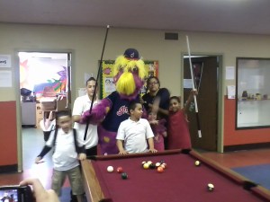 On Monday, members of the Cleveland Indians front office went to hang out at the West Side Boys and Girls Club. They helped the members with homework, played basketball, ping-pong and shot some pool with them. Slider even made a visit to the club, which seemed to excite the kids more than having us there.
